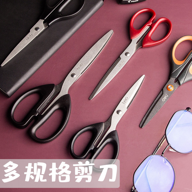 Deli stainless steel scissors Office home Large medium small handmade art kitchen tailor Paper-cutting knife Industrial student safety Multi-function scissors Sharp scissors Cloth Portable pointed stationery supplies