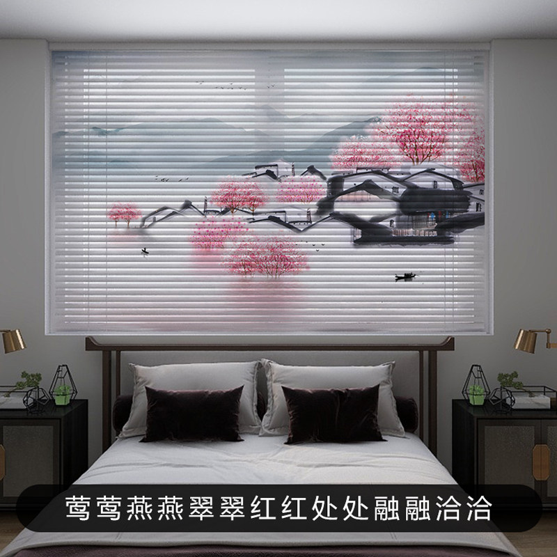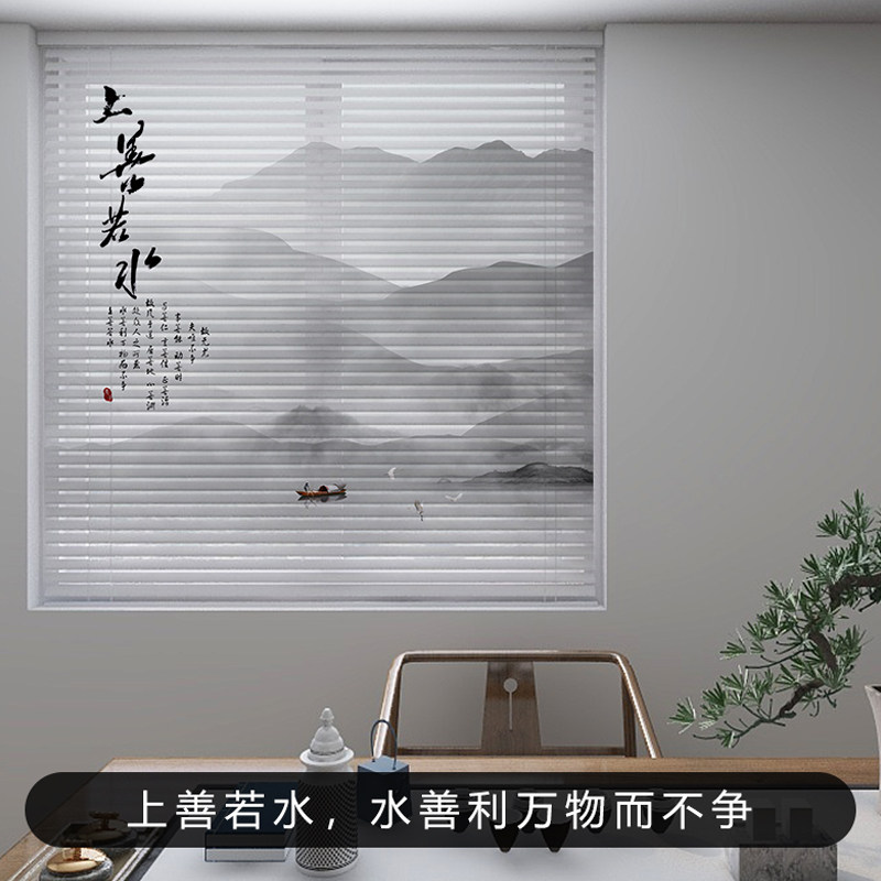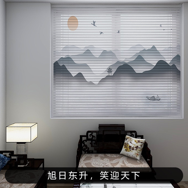 Chinese wind free of punch mounted aluminum alloy shutter curtain office bookroom living-room living-room lifting curly-style sun-curtain-Taobao
