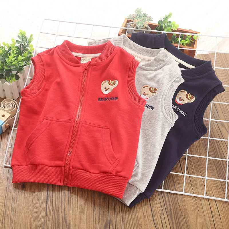 Children's vest waistcoat in spring clothing male and female children's knitted pure cotton embroidered waistcoat outside wearing thin foreign pine shoulder tide