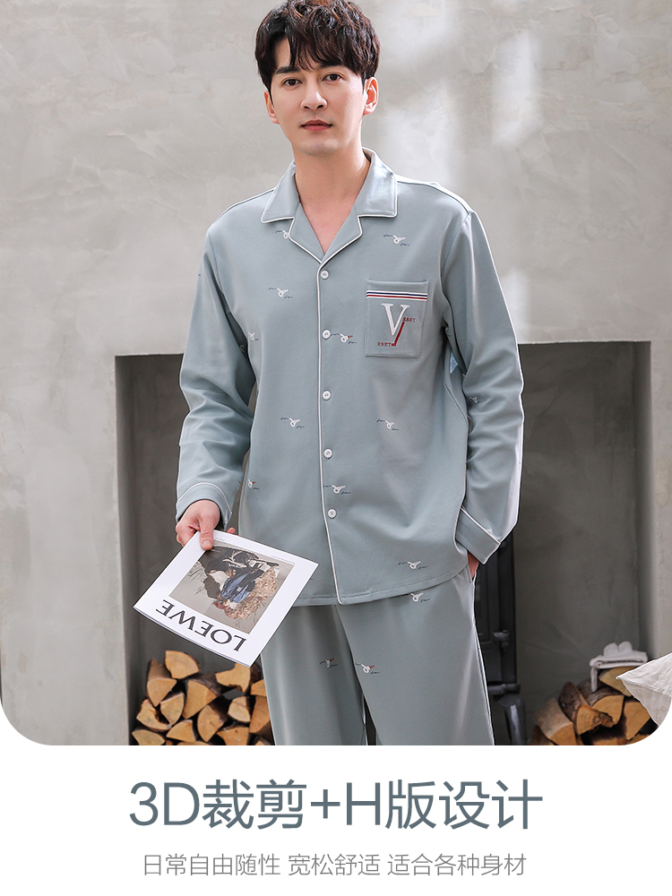 Hengyuan Xiang Sleeping Men's 2021 New Summer Men's Home Residence Spring Autumn Men's PURE COTTON LONG SLEEVE TWO-PIECE SUIT