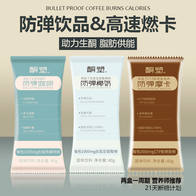 Bulletproof coffee Mocha coconut milk three-in-one set ketogenic diet satiety food replacement meal low carbon water shake