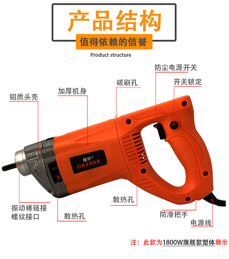 Jinxuan small single-phase 220V portable concrete vibrating stick vibrator construction project plug-in cement
