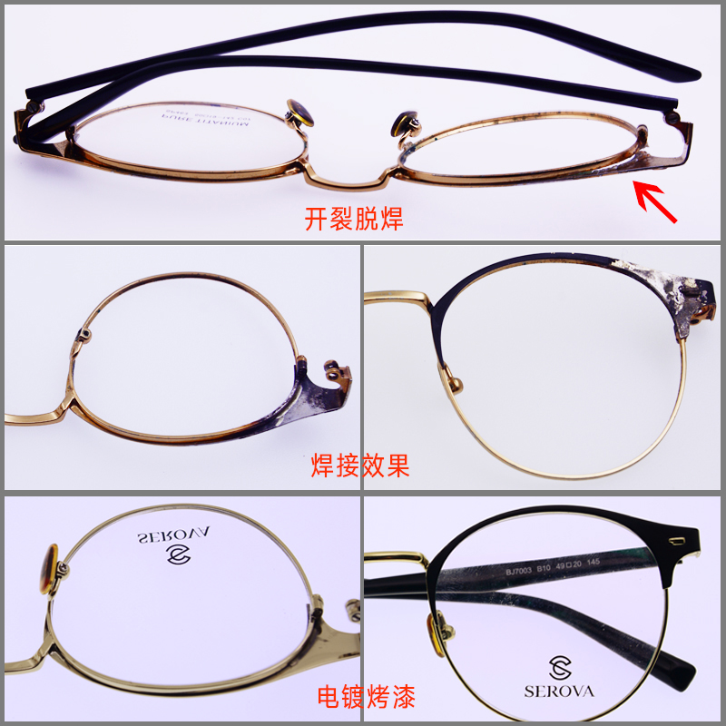 Metal welding plus electroplating (no traces) titanium frame welding plus plating (no traces) titanium frame electroplating refurbishment plate refurbishment hinge replacement lens replacement glasses legs replacement screw replacement glasses frame replacement deformation adjustment lens custom nose pad leaf replacement metal single welding (with traces) titanium frame single welding (with traces) monochrome plating refurbishment two-color plating refurbishment laser welding replacement foot cover ordinary metal plating refurbished myopic glasses replacement lens slingshot repair myopia measurement degree dark gray rivet replacement silver plate TR frame bracket repair