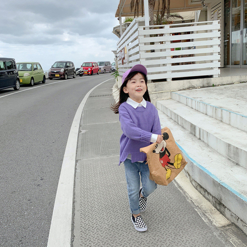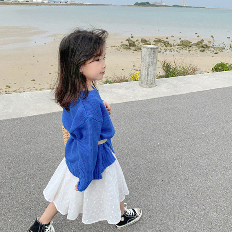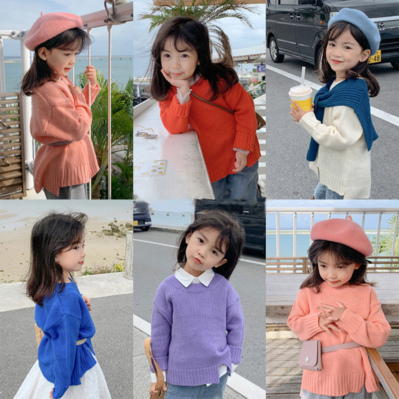 Girls' candy-colored sweater baby spring and autumn outfit all-match temperament new children's Korean style foreign style slit knitted sweater tide