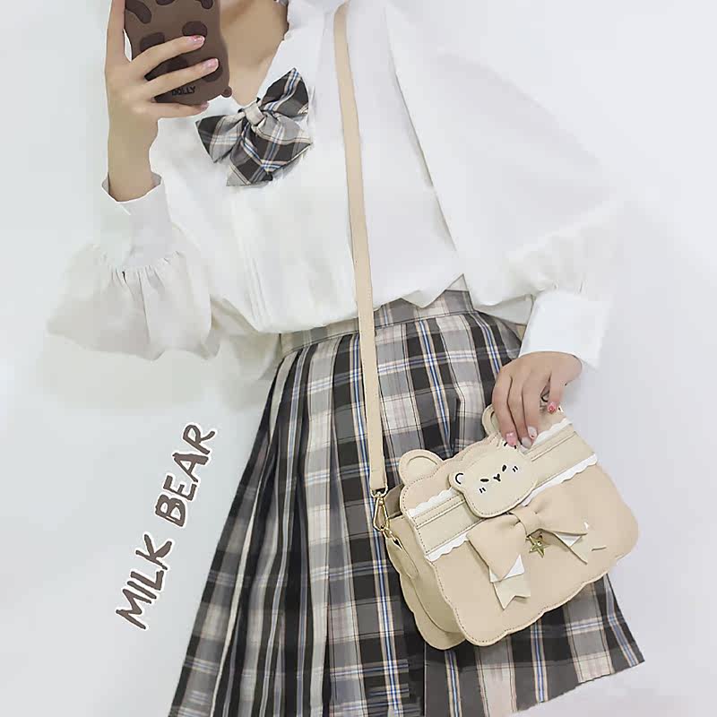 Milk Tea Bear Original Bear Cookie Slipper Bag Japanese JK Uniform Bag Cute Girl Bag with Lolita Bag