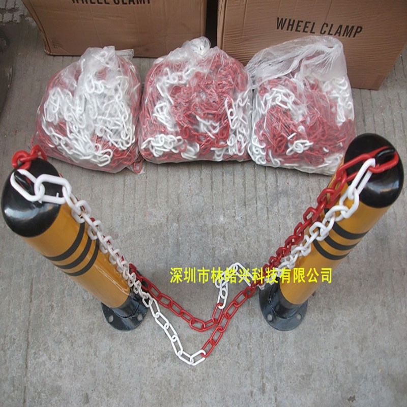 Red and white plastic chain black and white warning iron chain protection link galvanized anti-rust isolation pier parking column barricade chain