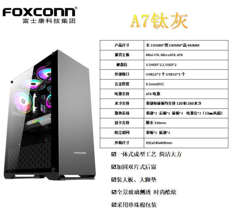 Foxconn A7 Main Shell Desktop Computer Metal Panel Game diy Side Penetration Shell atx Power Supply Lower Main Shell
