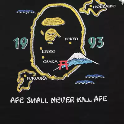 BAPE Behind the Letter Fuji Black and White Apes Japanese Commemorative Edition Ape Head Print T-shirt Couple Short Sleeve