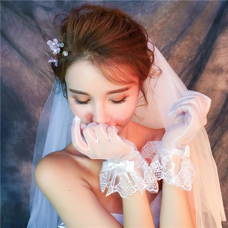 Bride Han Style Flowers Long Version Gloves White Butterfly Knot Lace Only Beauty Fairy Air Gloves Wedding Dress Breathable Accessories