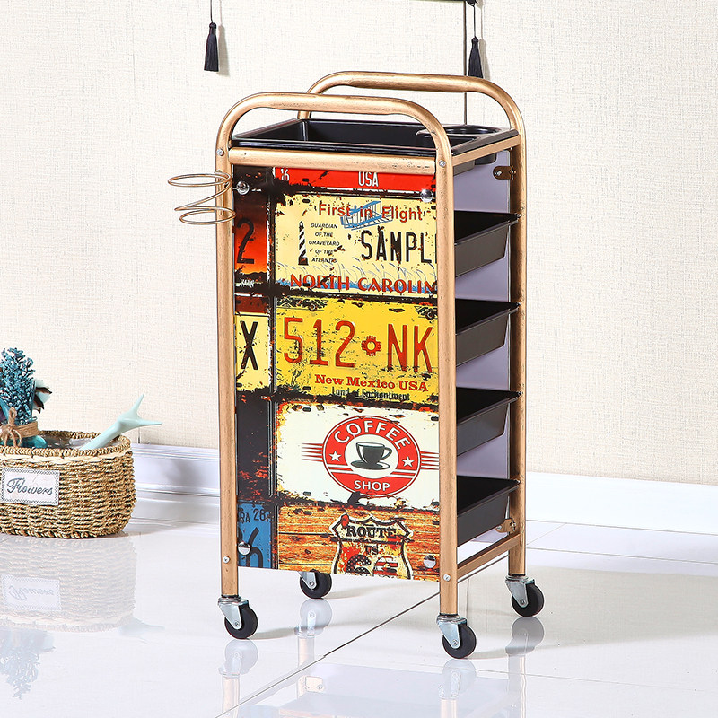 Hair tool car Beauty trolley Hair salon Hair stylist special lever car dyeing and ironing retro hair salon five-story cart