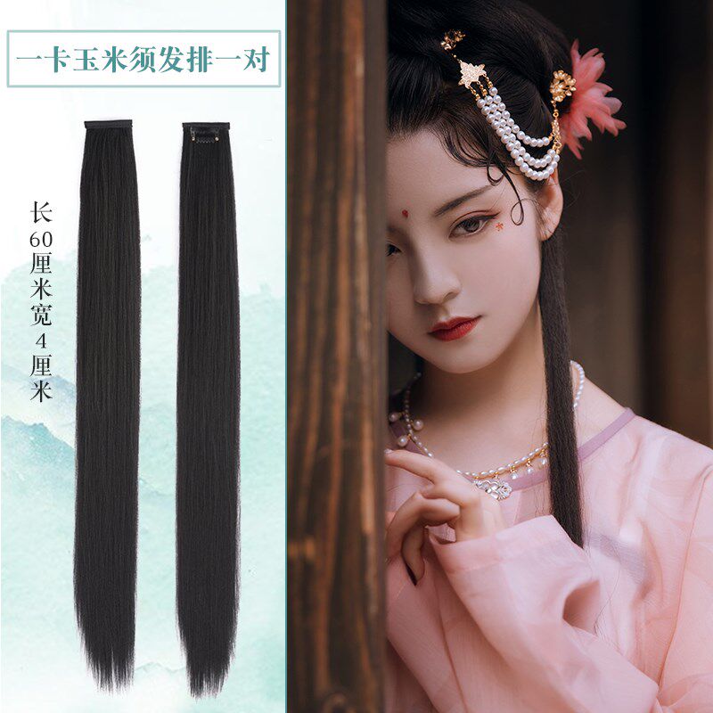 Ancient Costume wig Liuhai Long temples Temples Straight Hair Slices of Hymn Sea Cartoon Cos Lengthened Temples Corner Pieces Theatrical Opera Wig pieces
