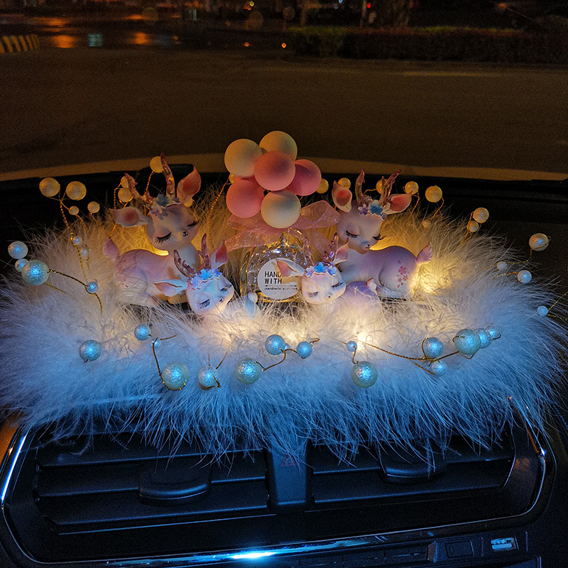 (a family of four) 1AB large deer 5AB small deer pink inlaid drilling balloon feather beads large cushion with atmosphere light (a family of four) 1AB large deer 5AB small deer pink balloon feather