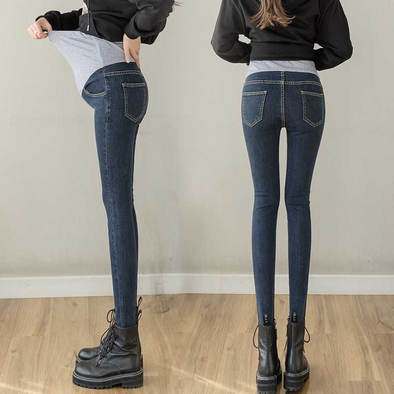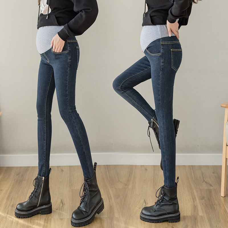 Net Red Pregnant Woman Jeans Spring Autumn section Long pants small feet Belly Pencils Pencil elastic large size for autumn and winter plus velvety thicken