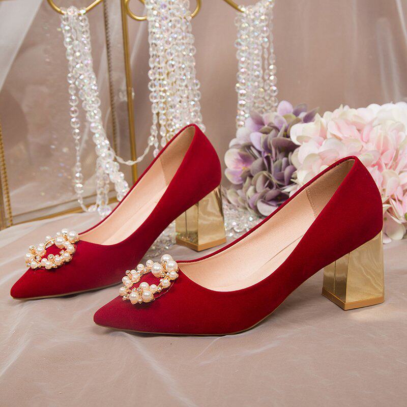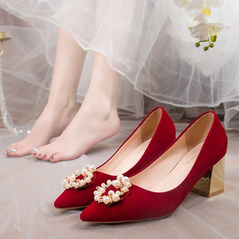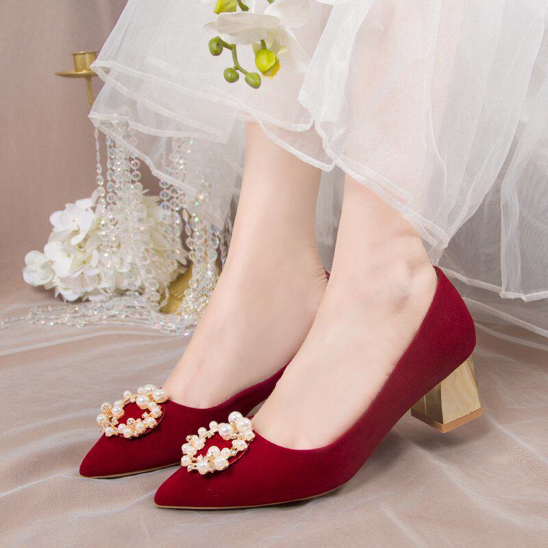 Married shoes and girls 2022 new spring bride shoes Chinese Xiuhe red heels are not tied to marriage single shoes