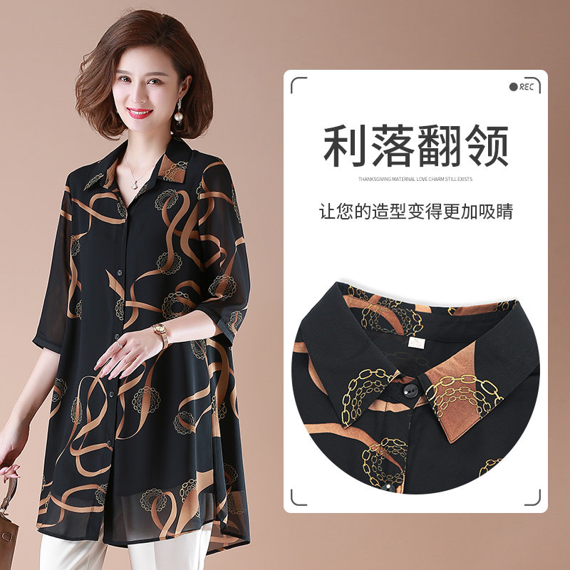 Fat mother summer top chiffon shirt fashion temperament suit 50-year-old middle-aged woman autumn shirt thin section