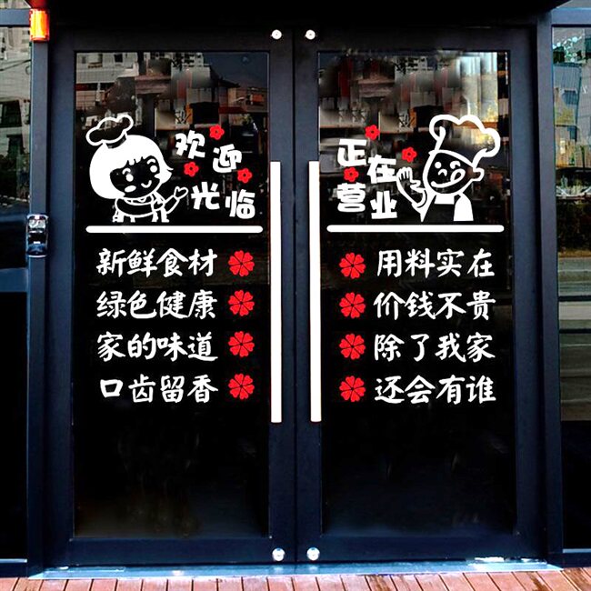 Welcome to the opening hours glass door stickers hotel restaurant barbecue hot pot restaurant restaurant wall stickers