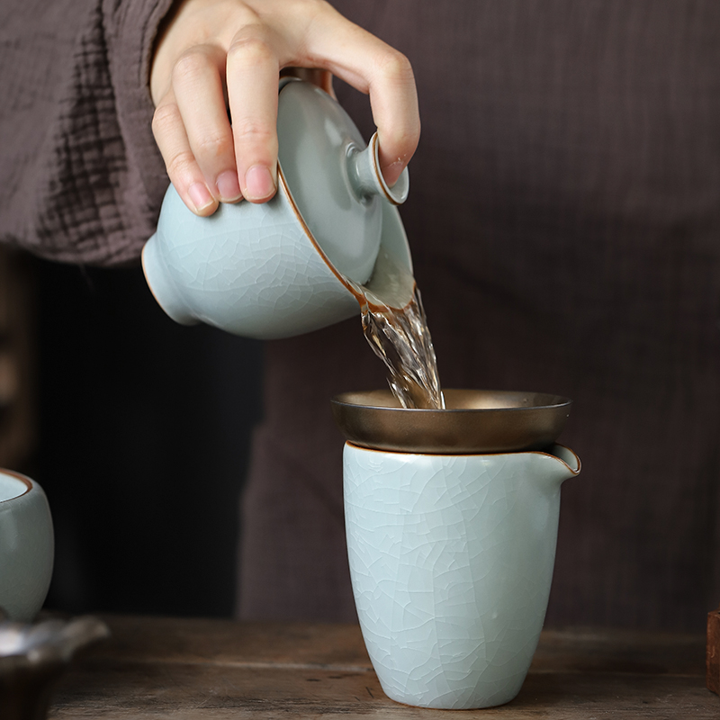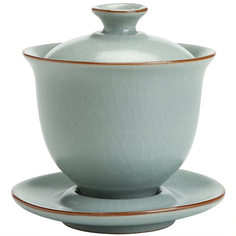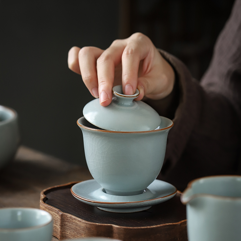 Retro Ru Kiln Triple cover bowl to raise open sheet tea cup single ceramic Ru porcelain util tea with home tea bowl tea