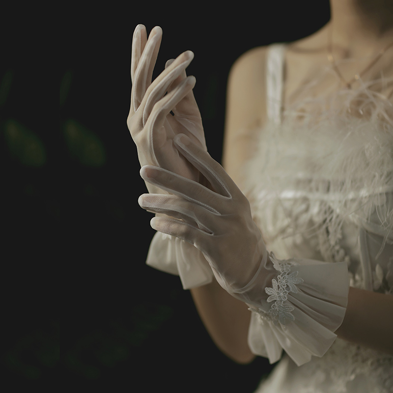 Wedding Gloves Retro New Bride Wedding Short Lace Silk Yarn Mesh Bow Super Fairy Photo Accessories