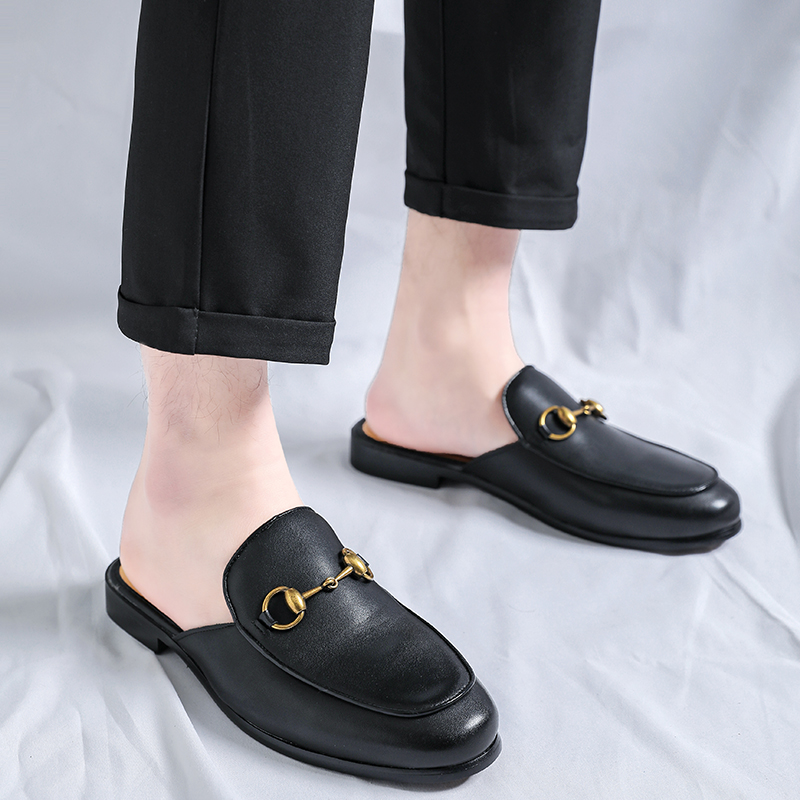 Leather Half Slippers Men's Summer Breathable Lazy Internet Celebrities