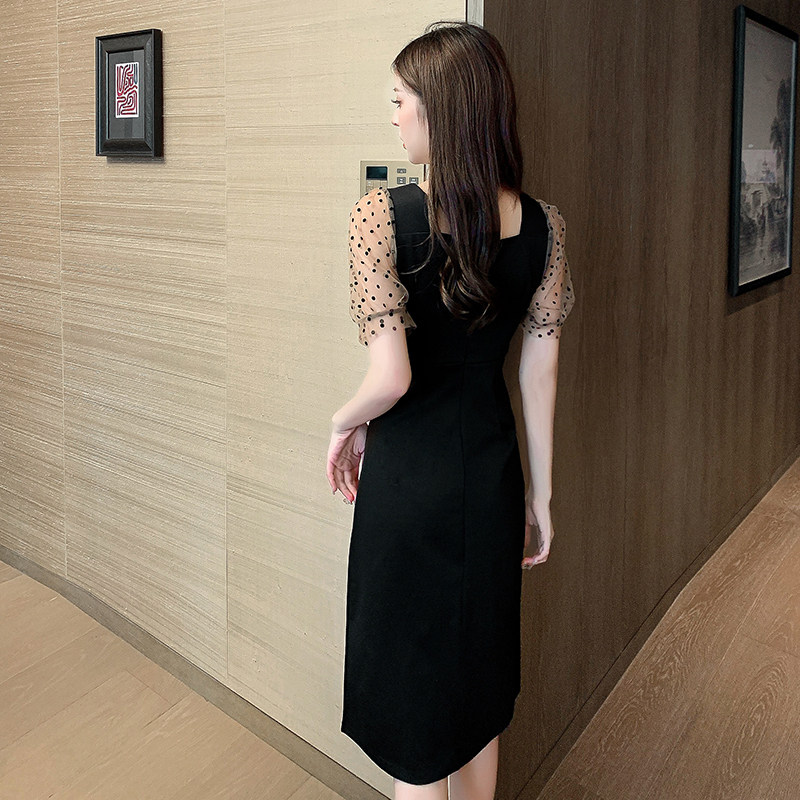 European station French slim wave point split dress women's design sense of wild fashion temperament waist long dress summer