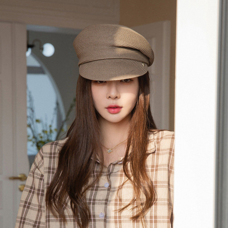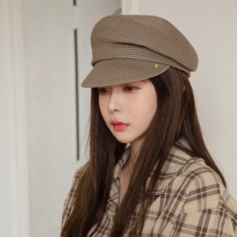 2023 - Japanese newspaper hat straw hat side folds spring and summer fiber weaving retro duck tongue sunscreen hat