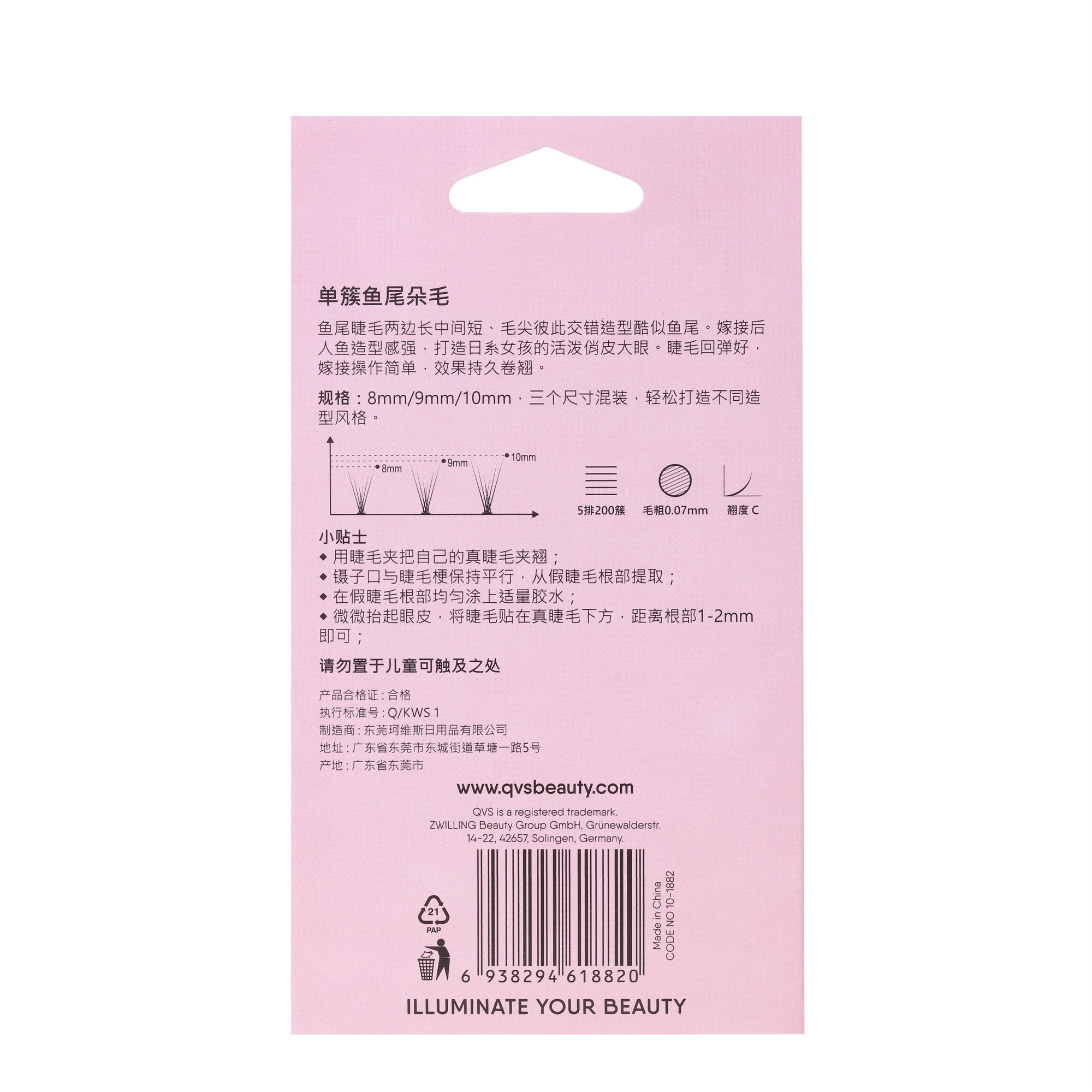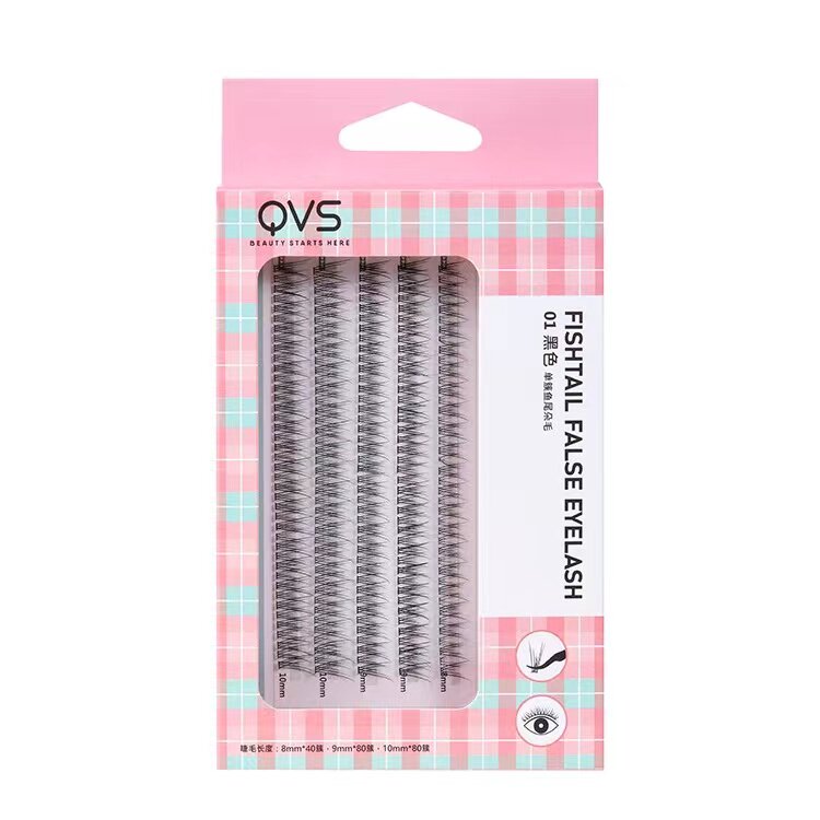 Watsons QVS single cluster fish tail hair classic black grafted single false eyelashes soft hair 8 9 10mm