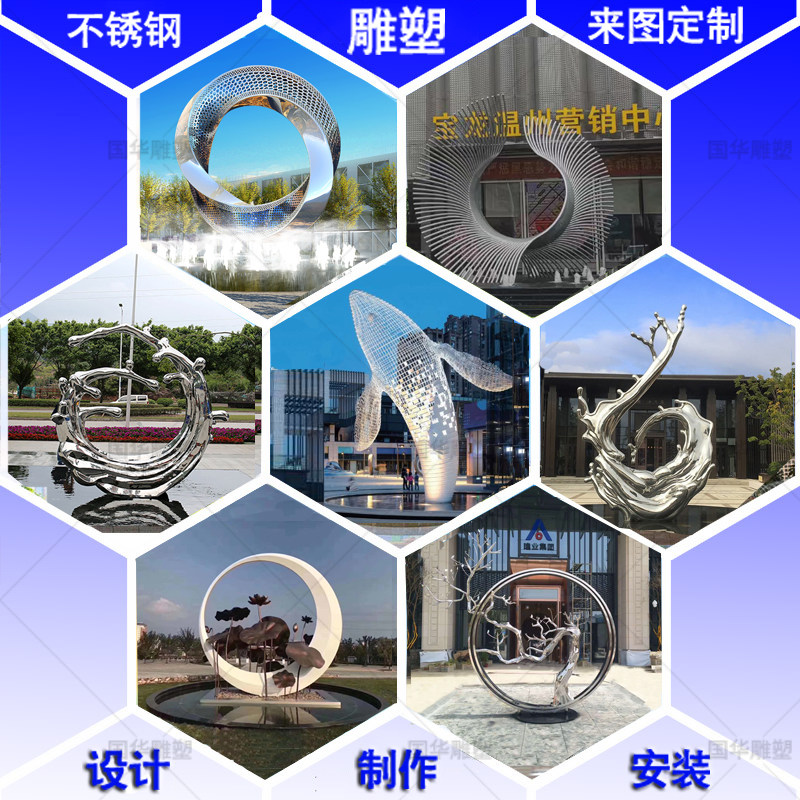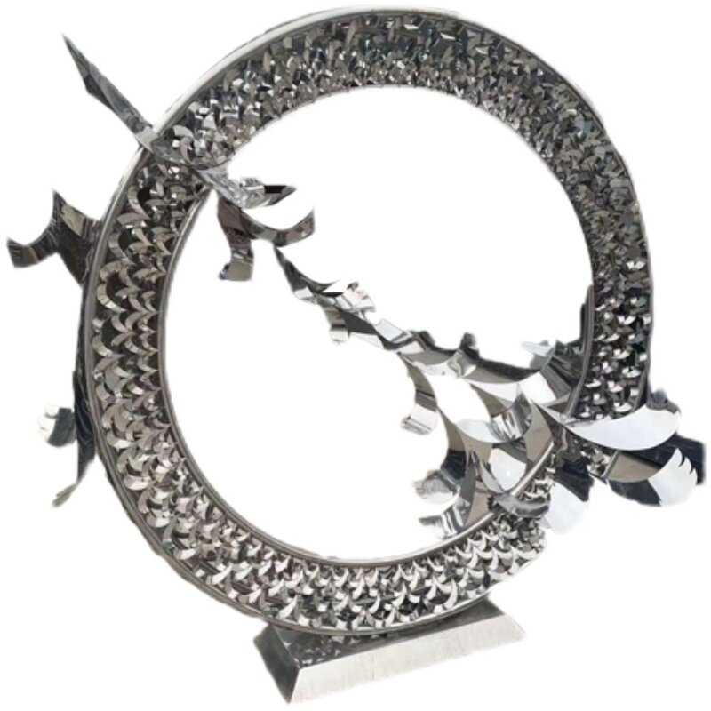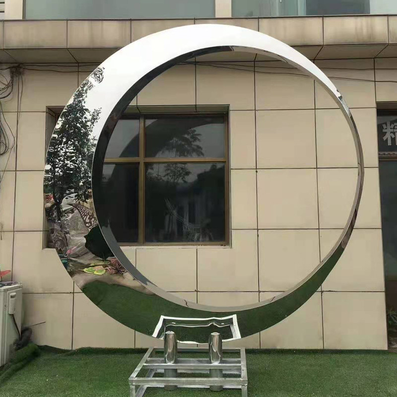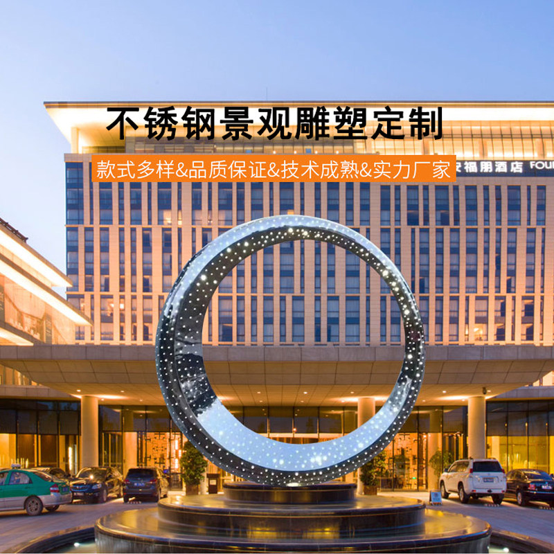 Large stainless steel water feature ring sculpture circular metal moon sales office creative luminous landscape sketch customization