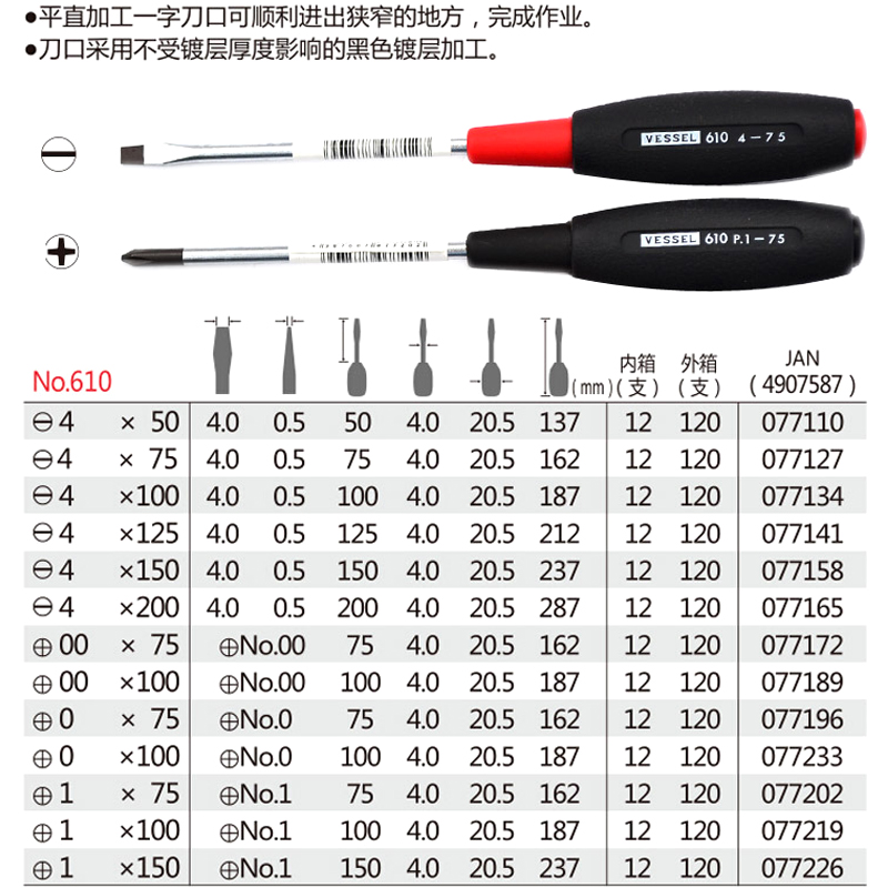 Japan VESSEL Weiwei cross word precision screwdriver imported disassembly notebook screwdriver 610