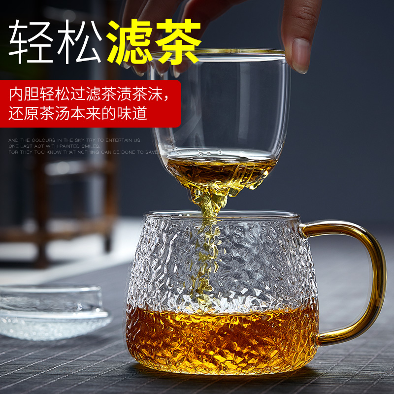 Xiang Yungrui Home Hammer Grain Glass Cups Glass Tea Cup Tea Water Separation Flower Tea Cup heat-resistant glass Bubble Tea Cup