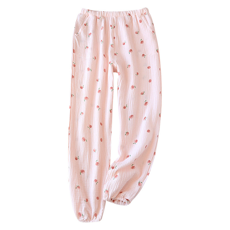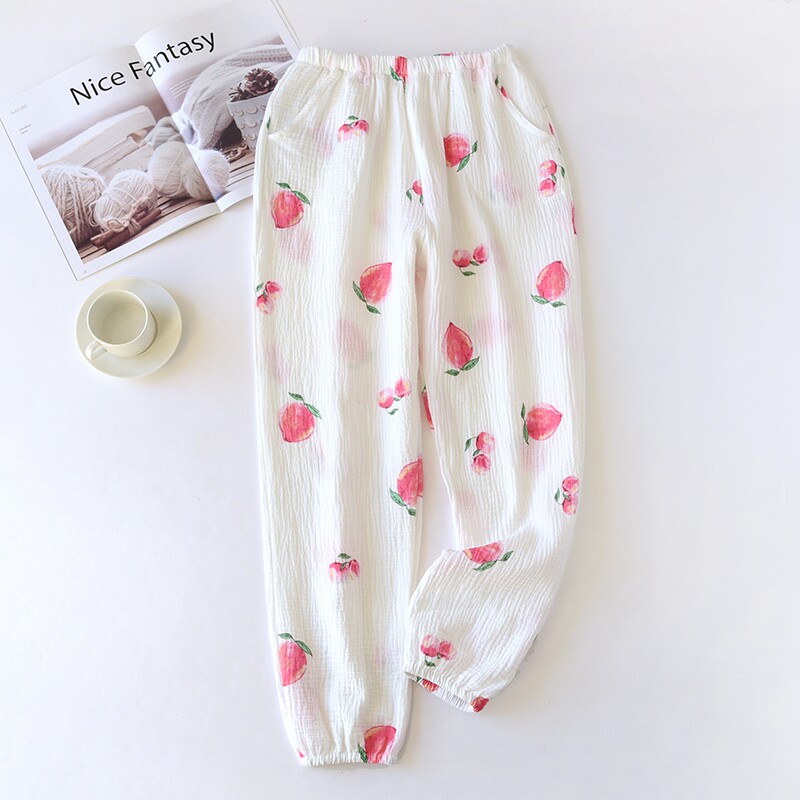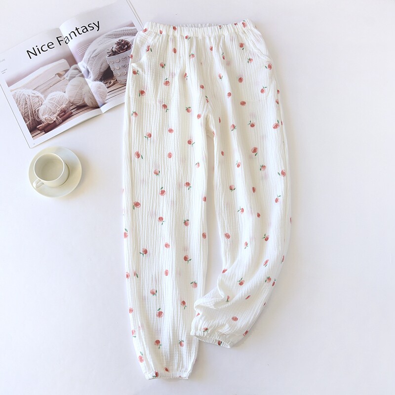 Sleeping Pants Woman Spring Autumn Pure Cotton Crepe Cloth Summer Thin Full Cotton Double Layer Gauze Long Pants Sweet and cute Close-up Home Pants