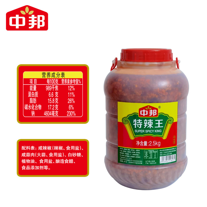 Zhongbant Spicy Wang Spicy Wang 2 5kg canned commercial use affordable mixed barbecue garlic pepper sauce Guangdong