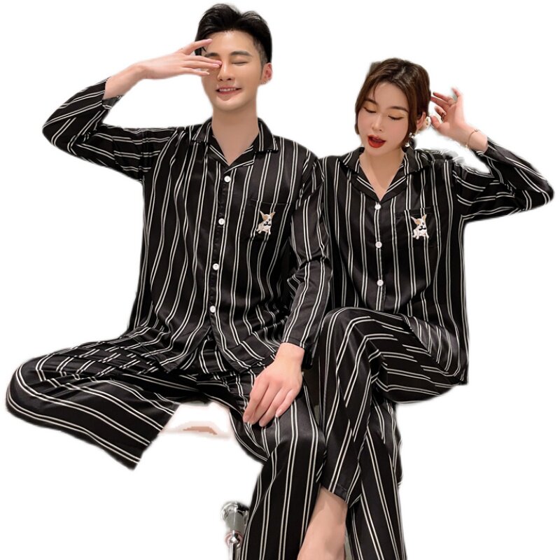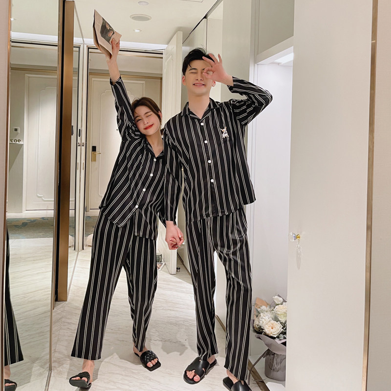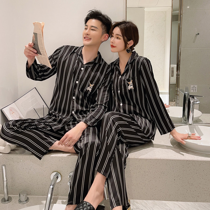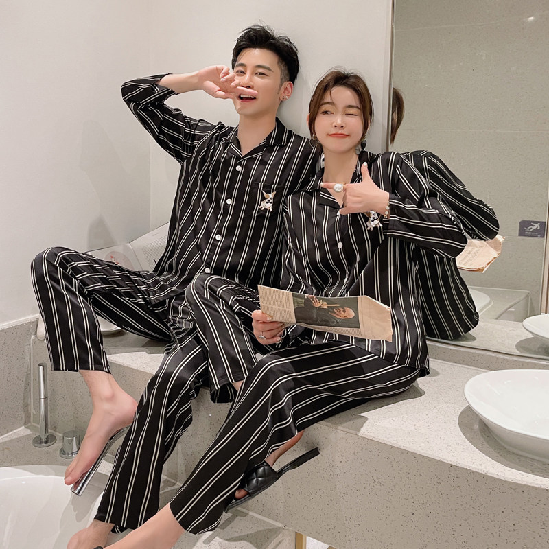Couple pajamas women's spring and autumn ice silk wedding suit long-sleeved thin section men's Cai Xukun same casual home service
