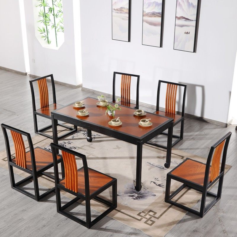 Modern new Chinese dining table and chair combination solid wood dining room furniture simple rectangular household dining table small apartment customization