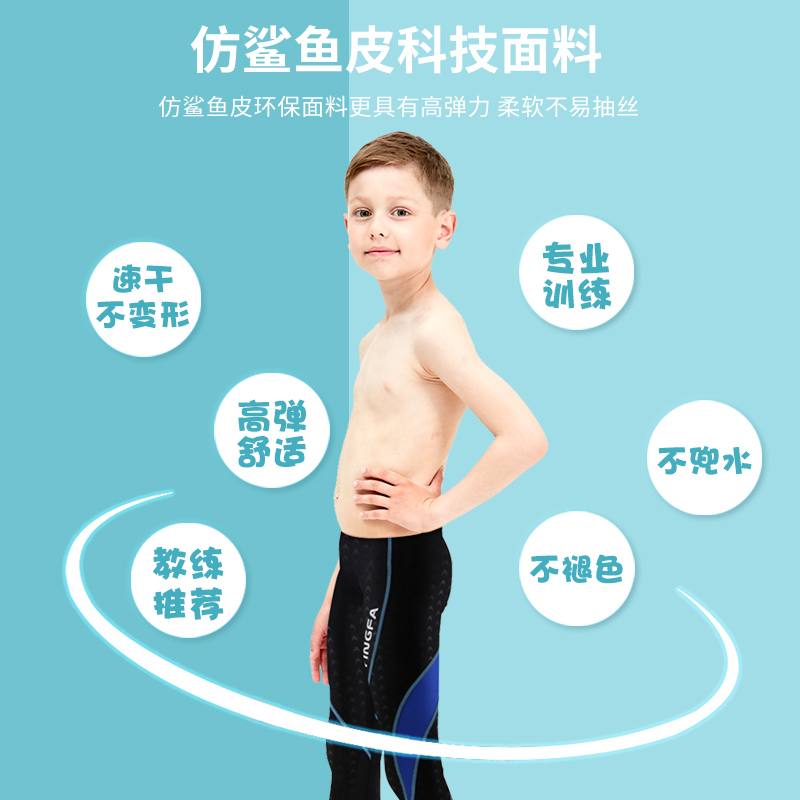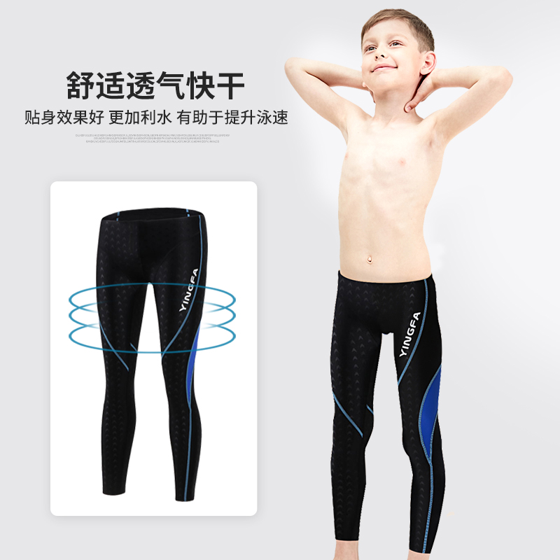 Yingfa children Boy winter swimming long leg shark skin swimming trunks defense cold insulation quick dry low waist professional sports swimsuit