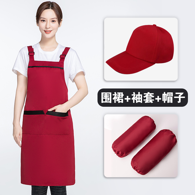 Apron sleeves Sleeves Hats Three Suits Fashion Work Clothes Women Catering Hotel Canteens Waistline Custom Logo print