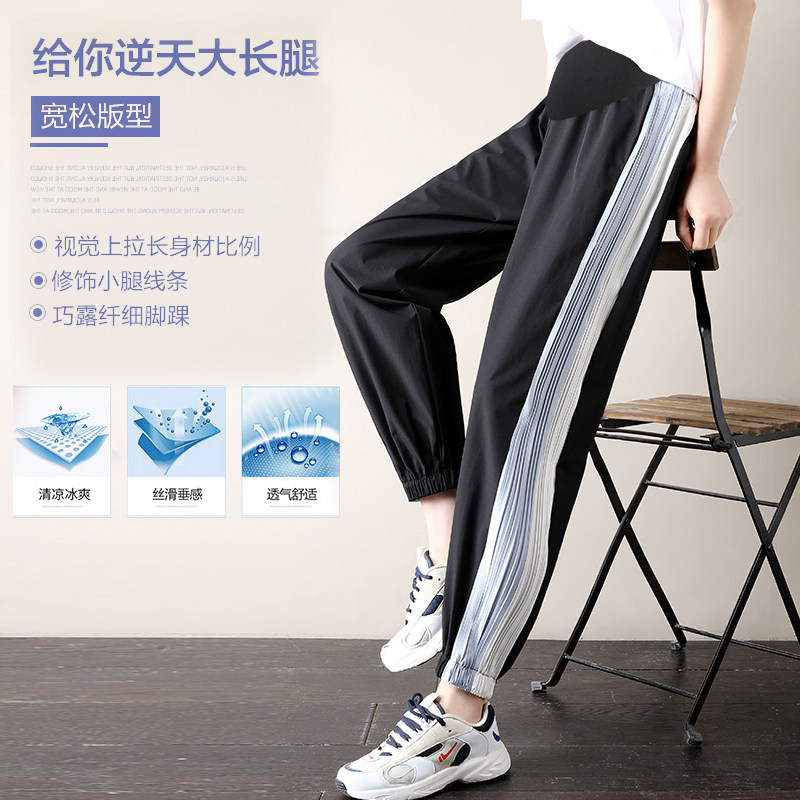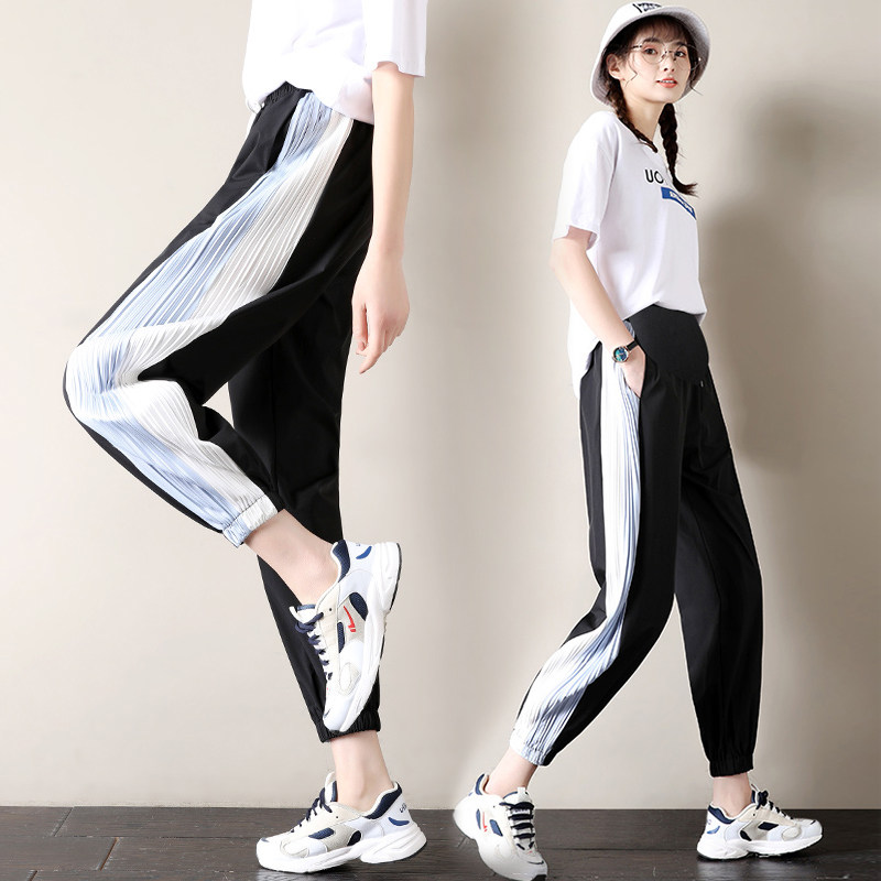 Maternity pants women summer thin section outer wear sports bunches plus size loose ice silk chiffon cropped quick-drying pants summer clothes