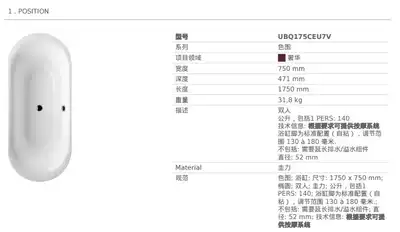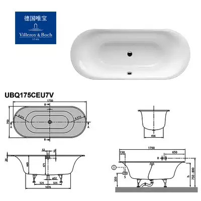 German original embedded adult household bathtub Guili UBQ175CEU7V-01 imported from Germany 1750*750