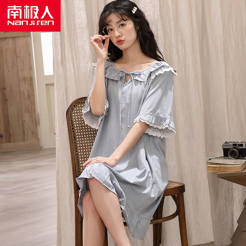 Antarctic sleeping dress summer pure cotton thin woman pregnant woman short sleeve loose princess wind pajamas woman summer