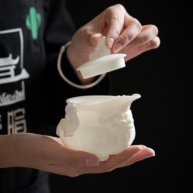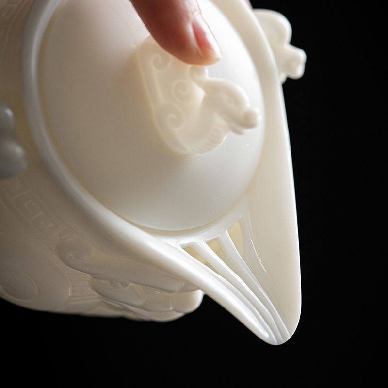 Dehua white porcelain mutton fat jade teapot hand-held pot ceramic Kung Fu tea set household filtered Pixiu teapot single pot