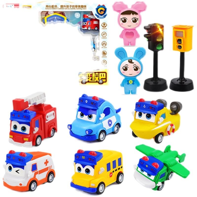 Children 100 Vari School Bus Back Force Toy Sets Song De Fire Police Car Captain Racing Plane Presents Boy Pendulum