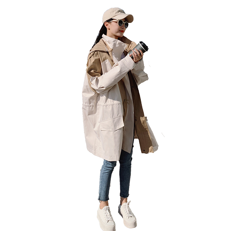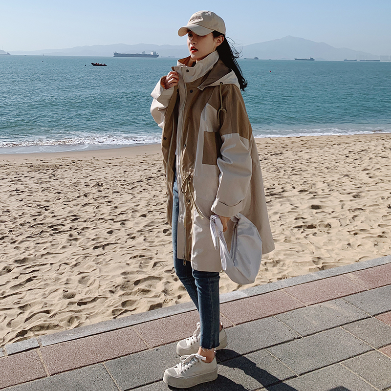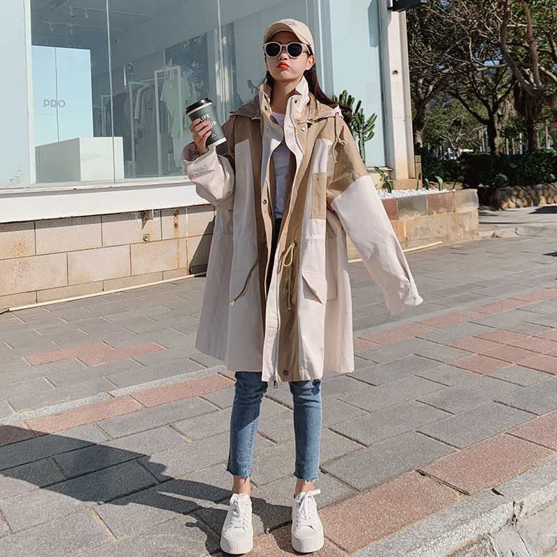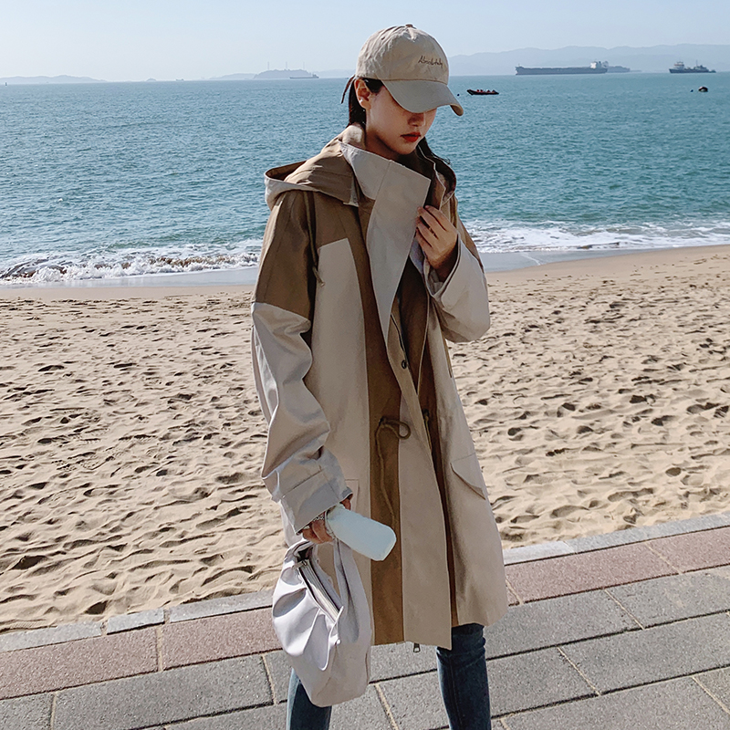 Early autumn tooling hooded windbreaker women's 2022 new mid-length small size spring and autumn European goods explosive casual jacket