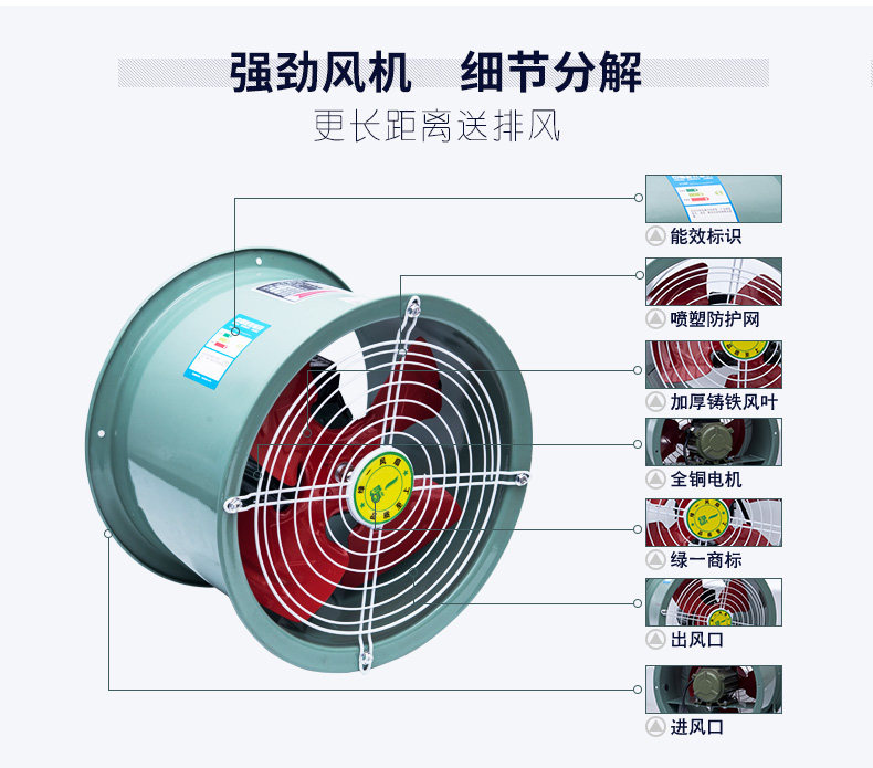 Axial fan 220V industrial exhaust fan duct fan exhaust household high-power strong mute 380V