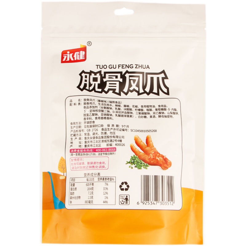 Boneless Chicken Feet Drinking Water Chili Pepper Vine Pepper Edible Vegetable Oil Edible Salt White Sugar Rice Wine Yeast Extract Spices Edible Flavors