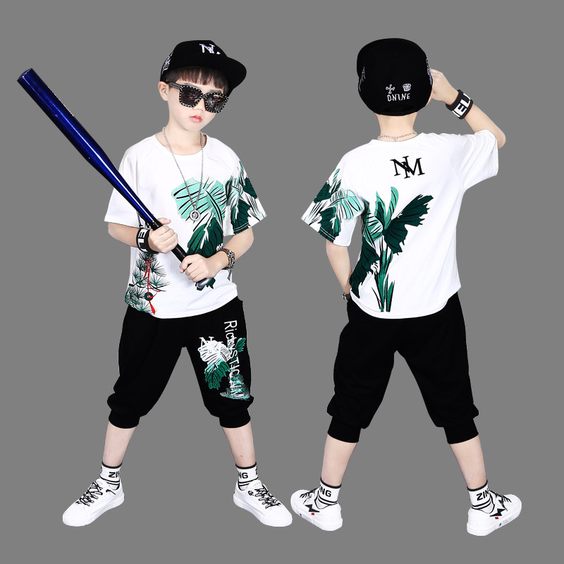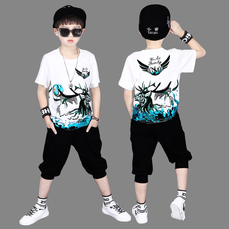 Boys Summer Summer Clothes 2023 New Zhong Big Children's handsome summer boys short - sleeved T - shirts cotton tide clothes