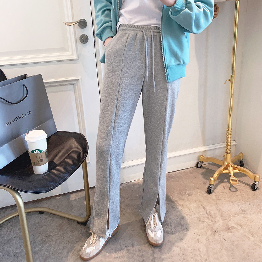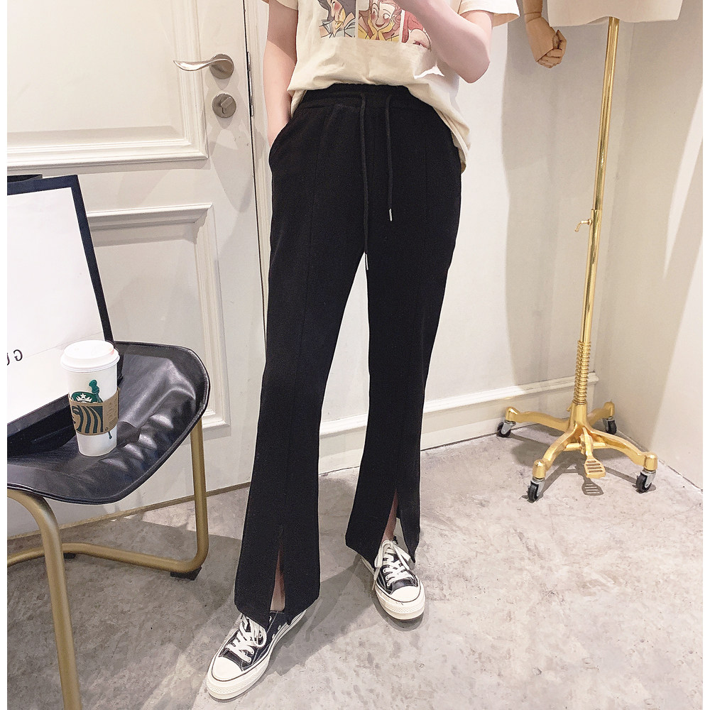 Broadlegged Pants Woman High Waist Pituality 2022 Spring New Women's Dress Korean Version Fashion Open Fork Horn Casual Straight Drum Pants