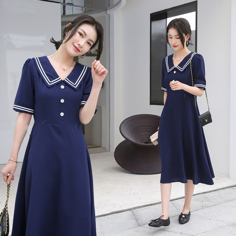 Short sleeve navy blue college style