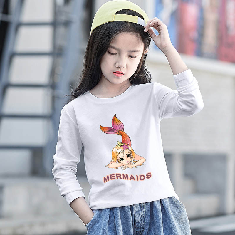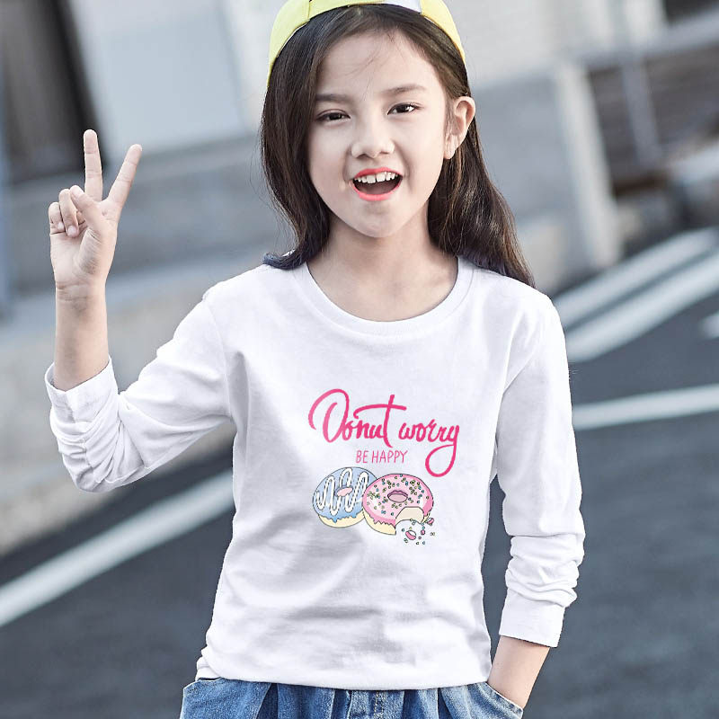 Girls Long Sleeve T - shirt 2023 Spring and Autumn New Children's White Pure Cotton Cotton Coat in Ocean Gas