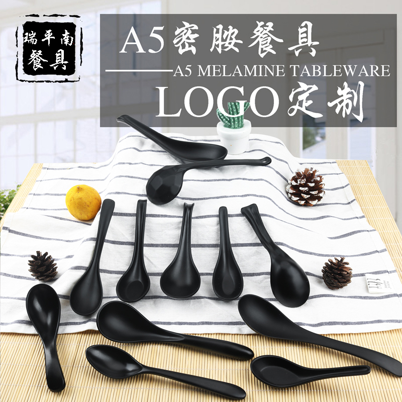 Black Melamine Ramen Rice Noodle Soup Spoon Spicy Hot Spoon Plastic Commercial Restaurant Restaurant Restaurant Noodle Restaurant Spoon