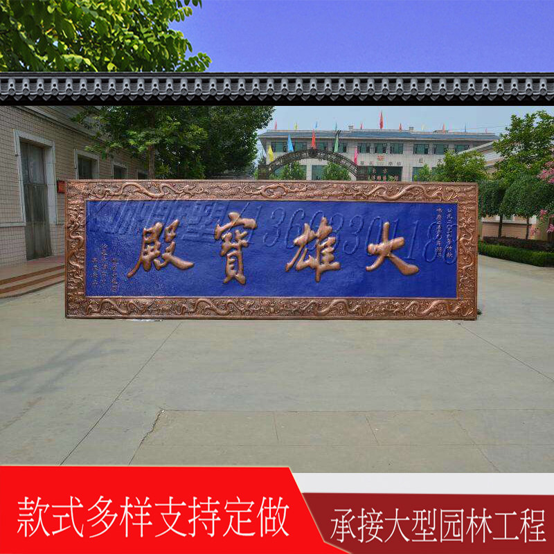Custom pure copper embossed murals copper plate characters Temple Daxiong Hall brass copper plaque outdoor metal products