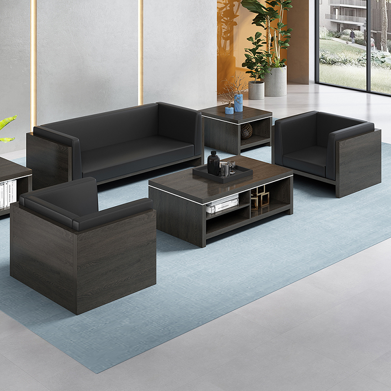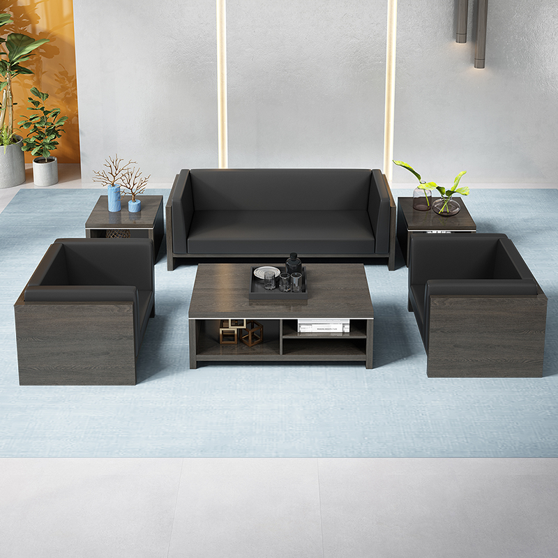 Office sofa coffee table combination simple modern business reception reception office Xipi leather sofa three-seat